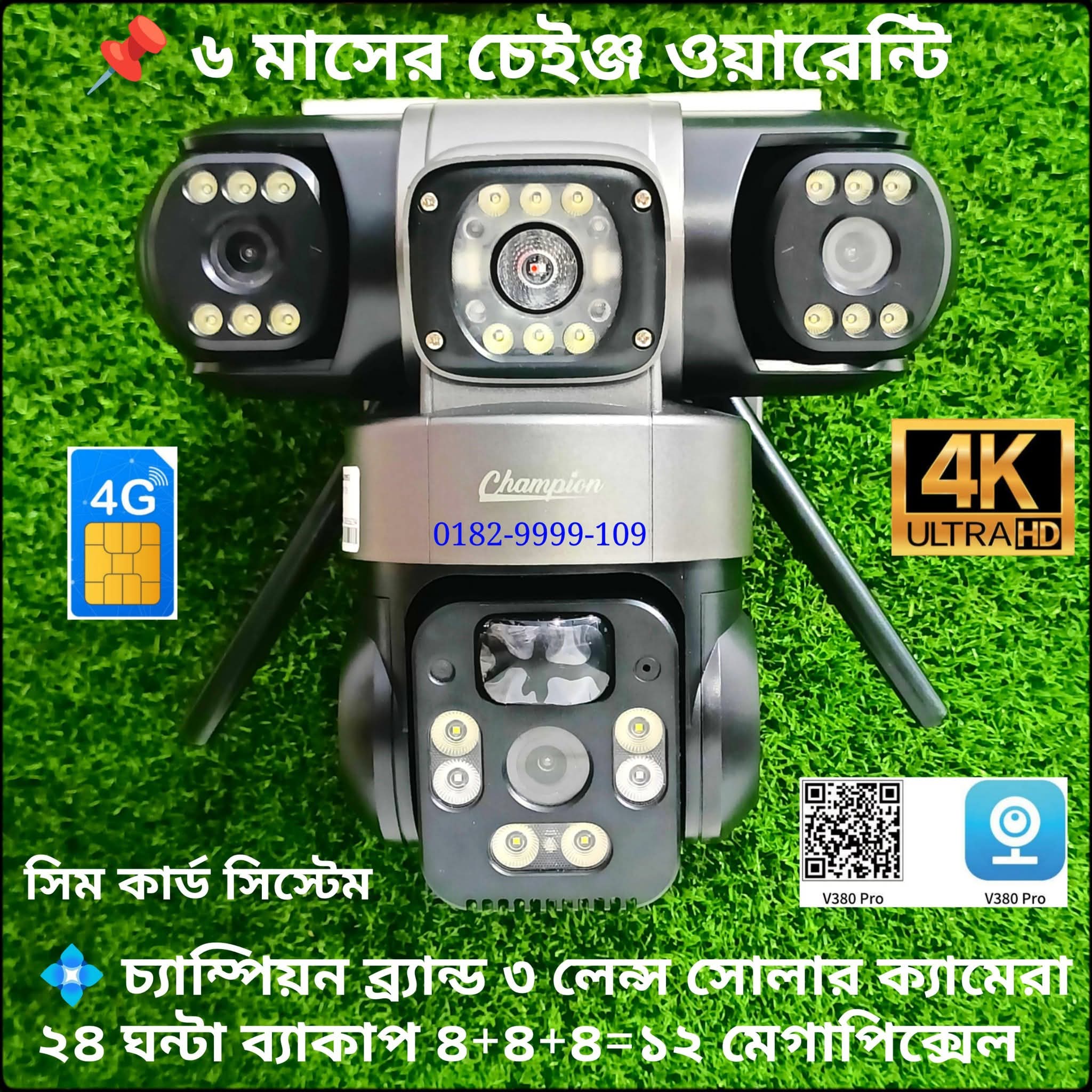 ছাড়3 Lens 4+4+4=12Mp Solar Camera Champion Brand 6 Month Change Warranty