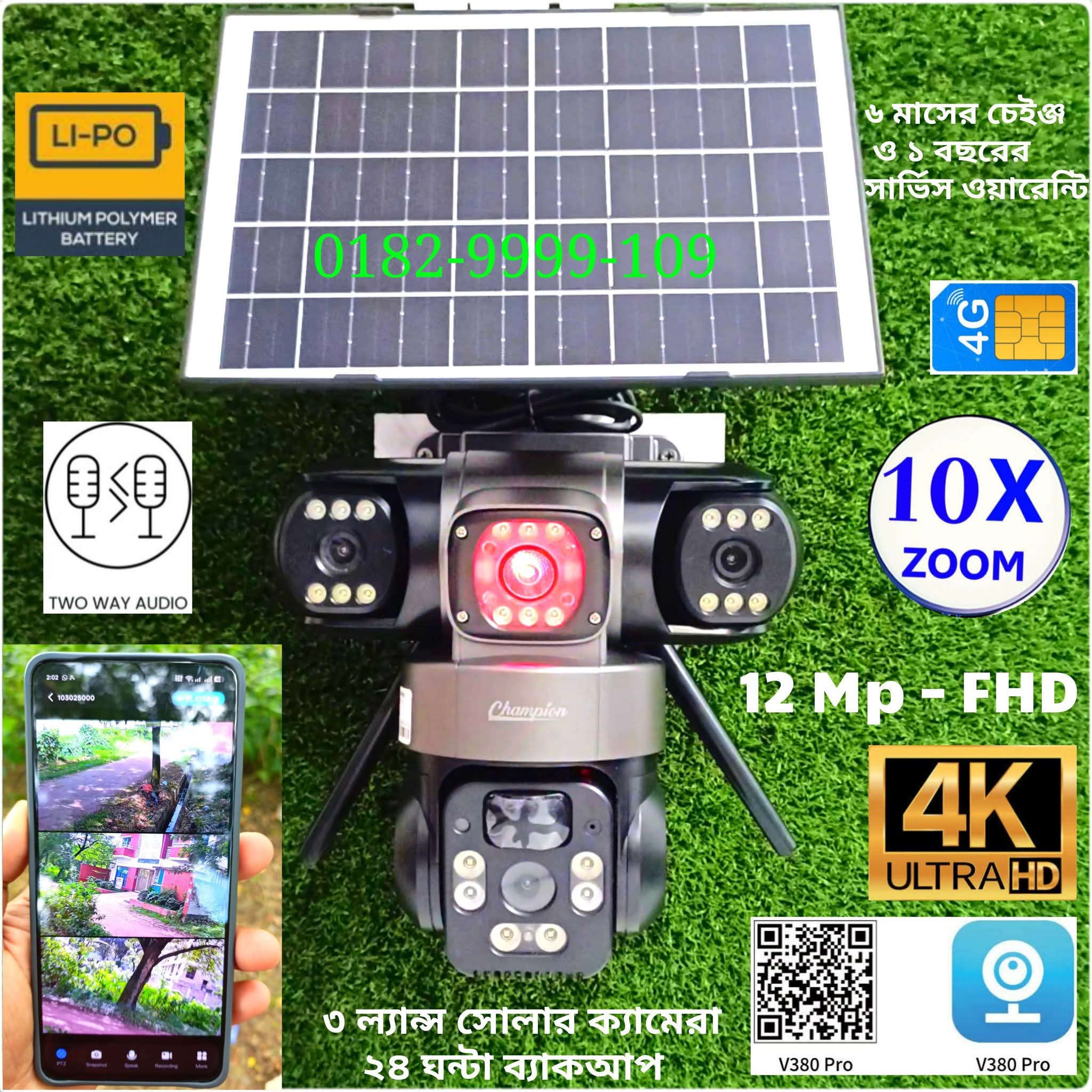 ছাড়3 Lens 4+4+4=12Mp Solar Camera Champion Brand 6 Month Change Warranty