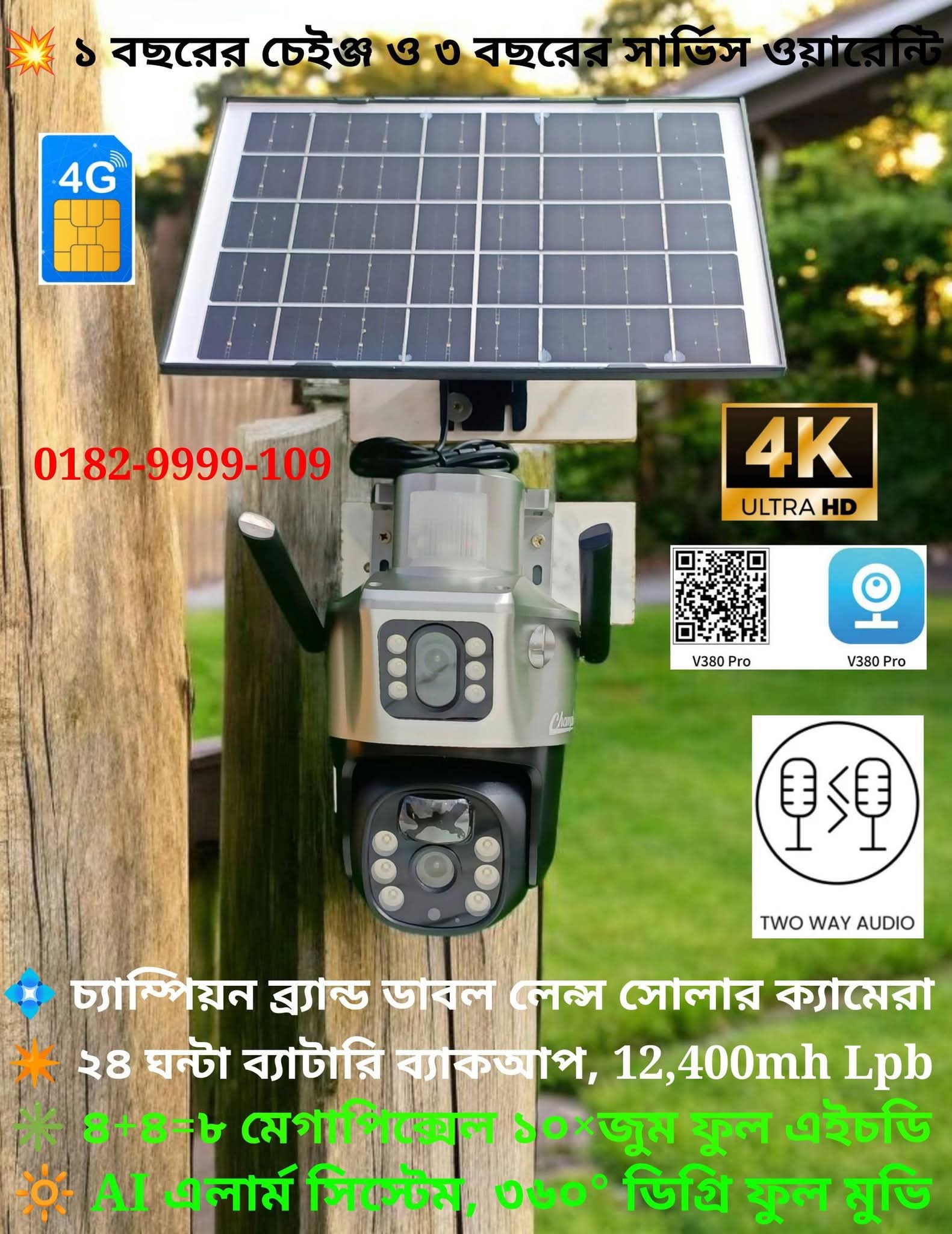 💠 ডাবল লেন্স সোলার সিস্টেম ২৪ ঘন্টা ব্যকআপ ওয়াটারপ্রুফ ডে নাইট কালার ক্যামেরা